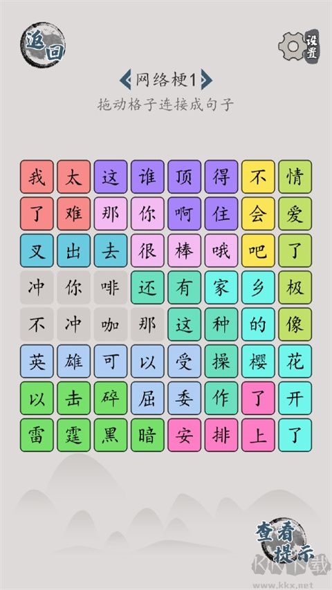 5、拖動(dòng)格子連成句子,例如 “我太難了”“這誰頂?shù)米?rdquo;“像極了愛情” 等。