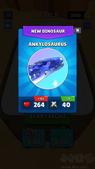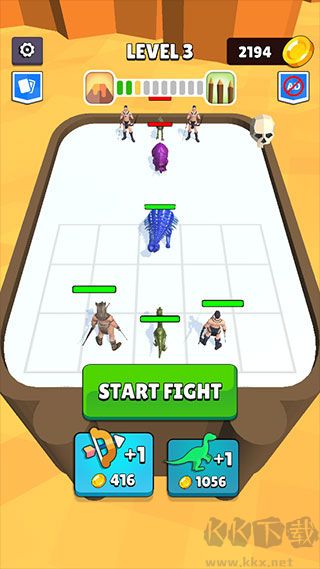 3、下方陳列射手和恐龍,消耗金幣即可購買,點擊 “START FIGHT” 開啟游戲。