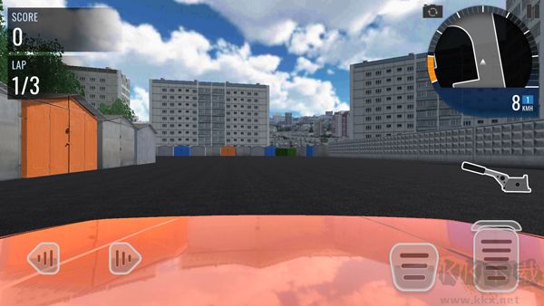 5、進(jìn)入游戲后,需駕駛俄羅斯汽車(chē)跑圈,屏幕左邊控制方向,右邊是油門(mén)和剎車(chē)按鈕。