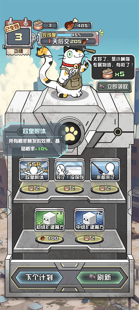 1、當(dāng)他人為生存資源奔波時,可憑借獨特 “躺平系統(tǒng)” 躺收各類物資。