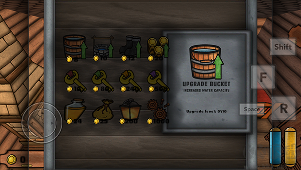 7、可以在工作臺用金幣換取需要的工具,如果有怪物來襲,可以拿起工具,然后點擊“Shift”進行攻擊,怪物被擊倒后會有零件和道具掉落,攢夠零件修好船,就可以通關了。
