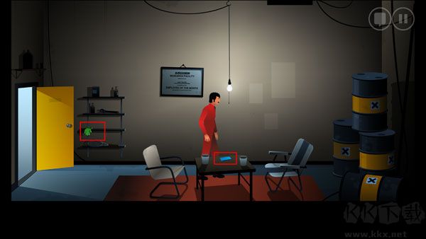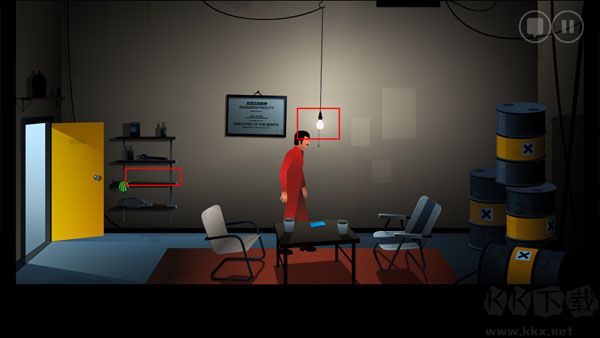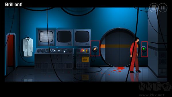 11、再次回到實(shí)驗(yàn)室最右邊的房間,用創(chuàng)口貼粘住左邊的按鈕,點(diǎn)擊右邊的按鈕打開(kāi)房門(mén)。