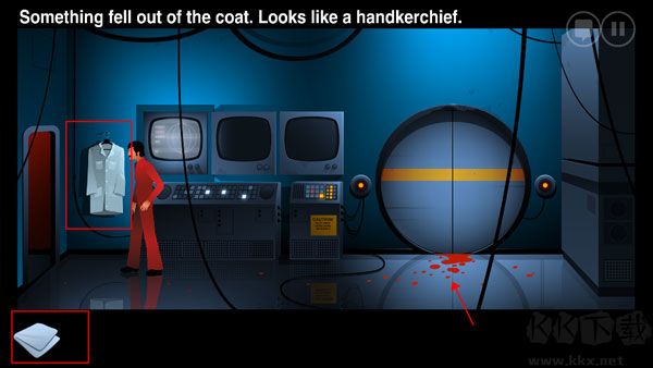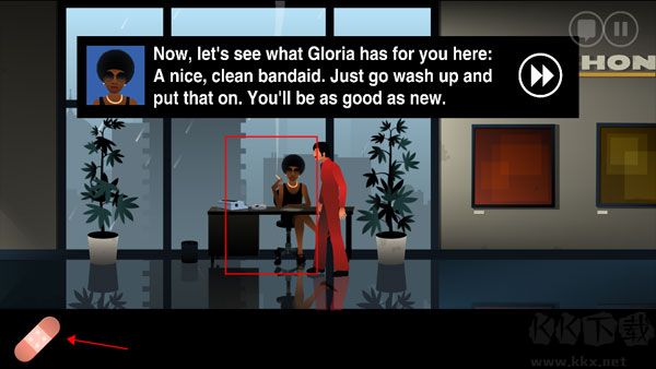 10、點(diǎn)擊白色的大褂獲取餐巾紙,并把把餐巾紙粘起右邊地下的血?;氐矫貢?shū)那里(BOSS房間外面那個(gè)女的),與她聊天會(huì)得到創(chuàng)可貼。