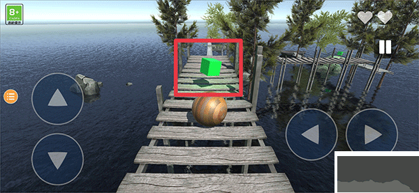 6、游戲開(kāi)始時(shí)一共有5次機(jī)會(huì),若球不小心掉入水中,或是落入陷阱時(shí)將會(huì)被扣除一個(gè)愛(ài)心,當(dāng)5個(gè)愛(ài)心全部扣除時(shí),游戲結(jié)束需重頭再來(lái)