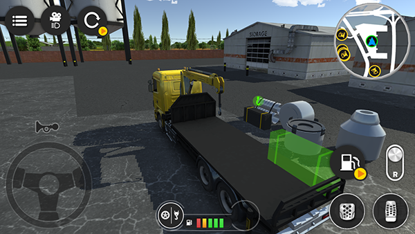 3、點(diǎn)擊屏幕下方切換成吊車模式,滑動(dòng)輪盤控制吊車手臂移動(dòng)貨物,把貨物全部拖上車。