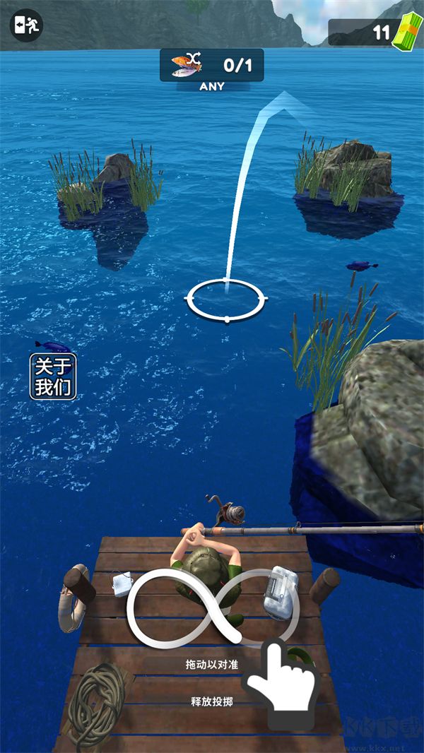 2、之后拖動(dòng)釣竿對(duì)準(zhǔn)釣魚區(qū),點(diǎn)擊投擲即可;