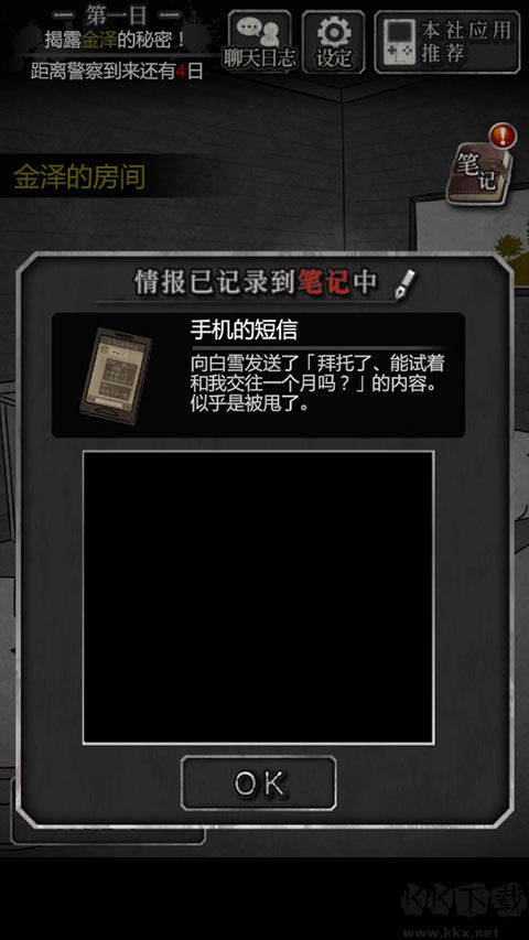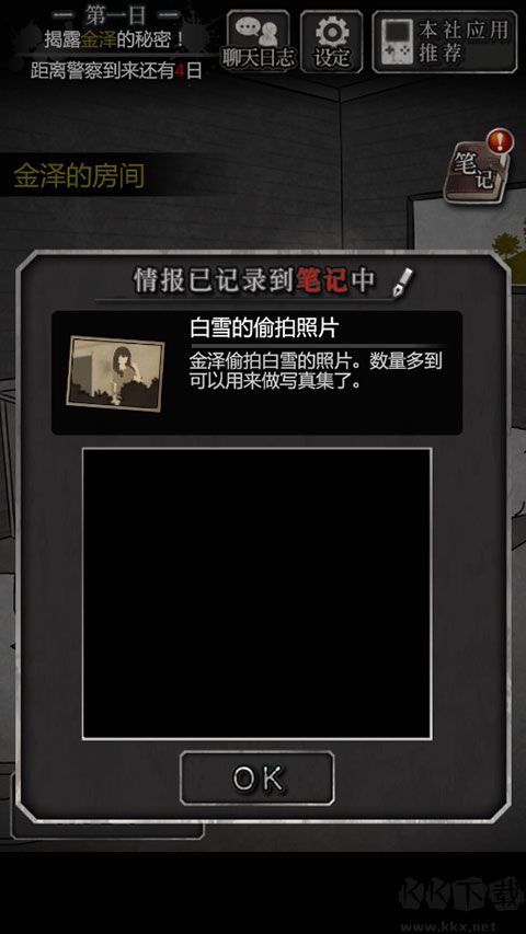 5、調(diào)查左上書桌,獲得證物“金澤的日記本”;