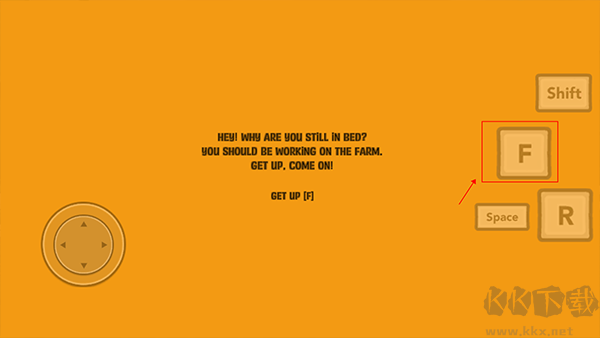 3、通過左側(cè)光標(biāo)操控角色移動,走到種子旁按 “F” 拾取,隨后前往農(nóng)場外找烏鴉獲取信息。