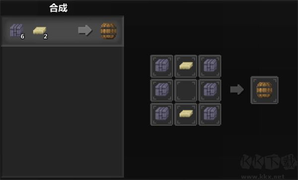 6、木桶:六個(gè)木板與兩個(gè)木平臺(tái),二者結(jié)合制成木桶。