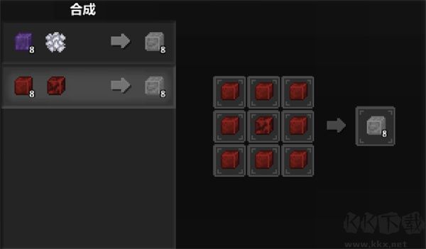 4、石頭:通過(guò)一個(gè)骨粉和八個(gè)腐化土,也能用八個(gè)肉塊加一個(gè)血石塊合成。
