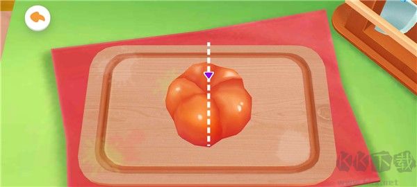 2、根據(jù)提示進(jìn)入,拉動(dòng)屏幕中的虛線,將西紅柿切開。