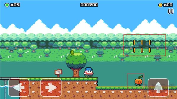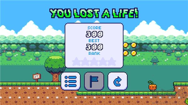 3、采用類似馬里奧的復古像素風格,低精度畫面搭配鮮艷色彩,表現(xiàn)力突出;