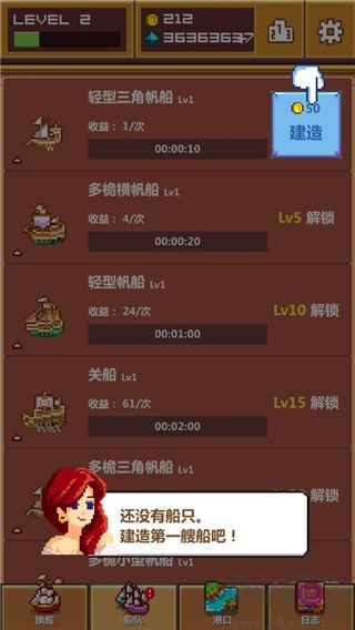 1、像素風(fēng)格的經(jīng)營(yíng)養(yǎng)成游戲,需購(gòu)置大船開啟海上冒險(xiǎn)之旅。