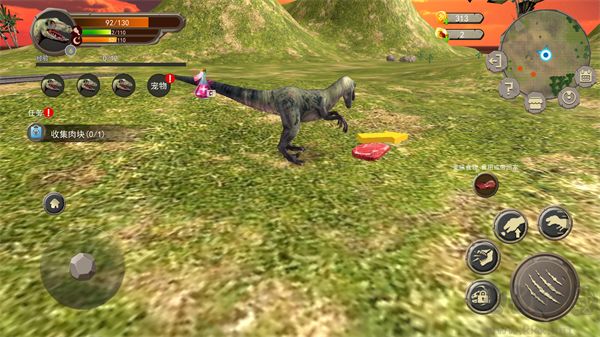 3、恐龍自動(dòng)消耗飽食度,需及時(shí)進(jìn)食肉塊補(bǔ)充,關(guān)注狀態(tài)。