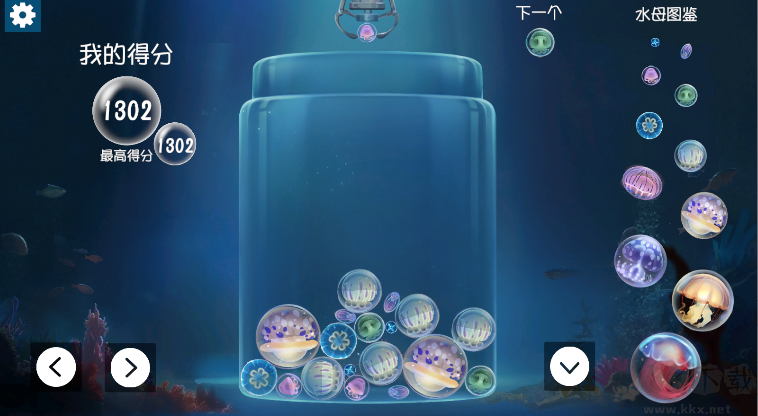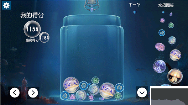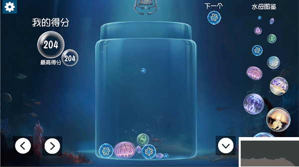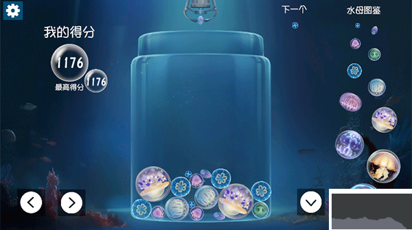 1、放置水母:游戲中會不斷掉落各種大小的水母。你需要點擊或拖動屏幕,將這些水母放置到游戲區(qū)域中。