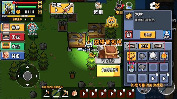 荒島求生模擬器無限金幣版是一款挺有意思的模擬闖關(guān)游戲,像素畫風(fēng),背景看著清爽。講的是外星機(jī)器人墜到荒島上,得在這兒活下去,最后修好飛船逃走。要幫機(jī)器人完成任務(wù),按右上角任務(wù)框的提示做就行,能升級(jí)、種東西、搜集材料、蓋東西、到處探索,慢慢擴(kuò)大生存的地方。里面還有不少地圖和能用的道具,跟著提示闖關(guān),體驗(yàn)跟別的荒島生存不一樣,挺新鮮的,想試試的話可以下來玩玩。