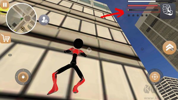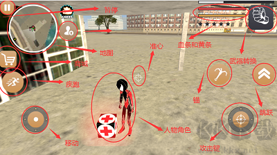 1、紅色角色為操控對象,可快跑、跳躍、扔繩索,也能揮拳、腿踹;繩索是核心道具,對座椅、欄桿、車輛等靜態(tài)物品能造成大量傷害并擊飛;