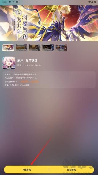 3、找到崩壞:星穹鐵道游戲詳情頁,查看介紹后,點(diǎn)擊底部黃色“下載游戲”按鈕,開始獲取該游戲。