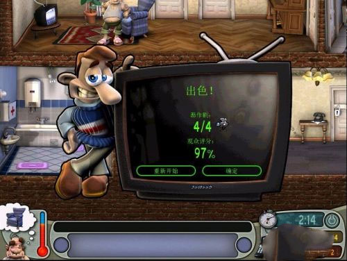 進入整蠱鄰居1中文版手機版游戲之后,選擇對應(yīng)的關(guān)卡,然后游戲的場景一般是兩層房間,小男孩進入到一層房間之后,在墻角放著一個柜子,點擊過去可以在抽屜里拿到一個暖水袋。 接著向左前進,在衛(wèi)生間的墻上有個藥箱,打開后可以得到一管膠水,而且是強力膠。 接著向右出發(fā),從一層的門進入到二層的廚房,在右側(cè)角落有個冰箱,從冰箱里邊可以得到一個雞蛋。 如果時間夠的話,可以把雞蛋放在左側(cè)的一個微波爐里邊,放的過程會有進度條顯示,放好后雞蛋會爆炸,然后房間的主任走到微波爐旁邊發(fā)現(xiàn)這個情況,瞬間會氣炸了,你的整蠱目的也就達到了,這也是第一次的整蠱時刻,接下來還會有。 接著右側(cè)窗戶旁邊有個望遠鏡,房間的主人拿著望遠鏡肯定沒干什么好事,接下來將膠水涂在望遠鏡上,在涂抹的過程中,上方會有進度條顯示,完畢之后趕緊閃人。 接著房間的主人就會走過來,再次拿著望遠鏡高興的看向窗外,看完之后發(fā)現(xiàn)望遠鏡拿不下來了,瞬間又氣了,這個是游戲的第二個整蠱時刻。 接下來趁著房間主人在廚房,趕緊在衛(wèi)生間旁邊的那個人進入到二層的看電視的地方,電視上有兩根天線,果斷將兩根天線給扭在一起,房間主人回來看到電視不能看了,又被氣了一次。 接著再將暖水袋放在旁邊的沙發(fā)上,然后房間主人回來后坐在上邊,很快就又生氣了,小男孩再一次整蠱成功。 到這里,成功的四次整蠱就完成了,然后會彈出一個游戲評價,這里就可以直接繼續(xù)下一個關(guān)卡了,游戲的主體任務(wù)就是這樣,利用房間的各種道具整蠱房間主人,最后整蠱成功順利過關(guān)。