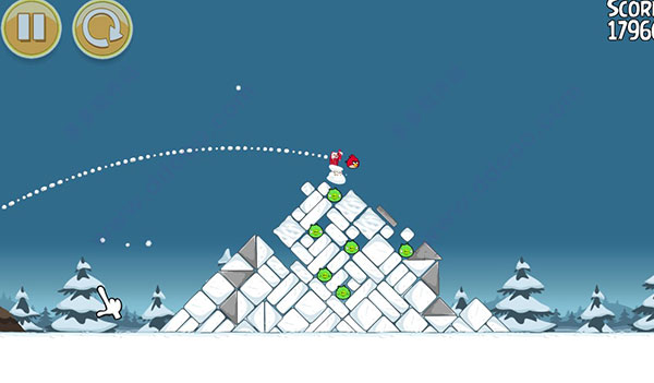 5、使用彈弓發(fā)射憤怒的小鳥,助你順利擊中可惡的豬頭。