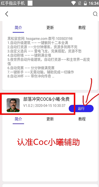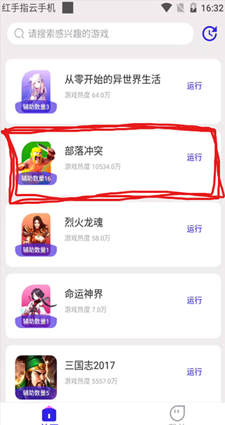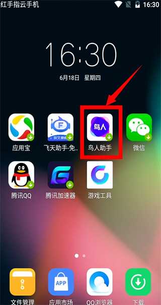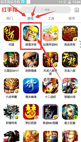第三步:設(shè)備啟動好之后,在紅手指設(shè)備里記住是紅手指設(shè)備里,不是手機(jī)里。下載兩個軟件【部落沖突】和【鳥人助手】