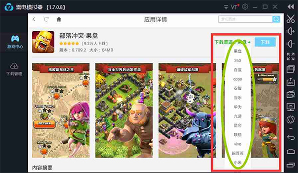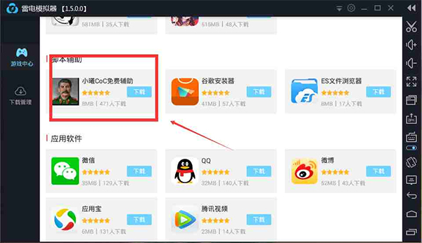2、分別在雷電應(yīng)用中心下載小曦和COC版本