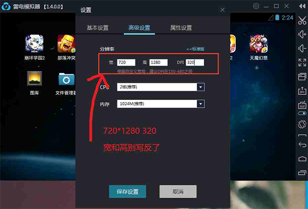 3、設(shè)置分辨率,運(yùn)行輔助的分辨率要求是720*1280,點自定義——寬:720、高:1280、dPI:320(如下圖)
