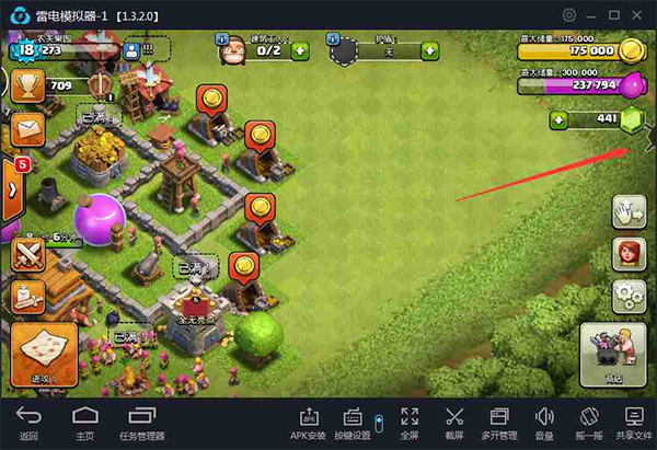 5、之后打開部落沖突,進(jìn)入游戲,可以發(fā)現(xiàn)右邊藏著個小外星人,點他就可以把他揪出來,點擊啟動就可以愉快地掛機(jī)了。