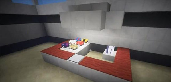 在上面鋪上一層紅色地毯, 最中間放置一塊白色的測(cè)重壓力板。