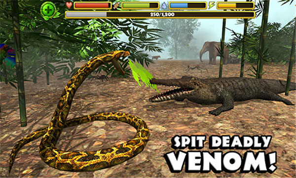 進(jìn)入熱帶雨林和生活毒蛇的生活!探索郁郁蔥蔥的叢林中充滿了兇猛的動(dòng)物和各種形狀和大小的昆蟲。生兒育女,追捕食物,爭(zhēng)奪你的生命對(duì)抗兇猛的食肉動(dòng)物如老虎,鱷魚和大猩猩!