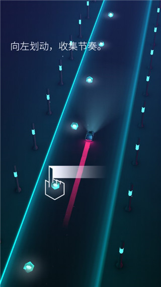 電音超跑作為一款競(jìng)速類音樂(lè)游戲,電音超跑的玩法還是相對(duì)比較的通俗易懂的,在這里你將成為一名孤獨(dú)的駕駛者飛馳在被節(jié)奏操控著的凄寂冷漠的虛擬世界里,在這里你只需要通過(guò)左右滑動(dòng)以實(shí)現(xiàn)左右側(cè)的移動(dòng),上滑跳躍和下滑來(lái)操作賽車進(jìn)行賽跑即可。