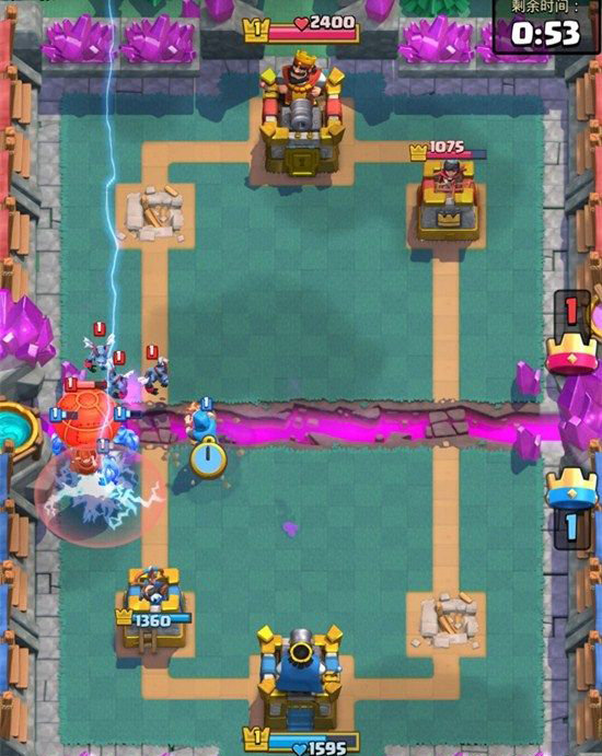使用玩法:電擊法術是法術幽谷中解鎖的全新法術卡牌,這個單位在后期很多的競技場和錦標賽中都具有較高性價比和熱門的使用率。