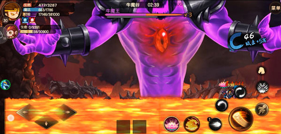 2、牛魔王的傷害很高,要靈活運(yùn)用技能躲避傷害,被牛魔王沖撞后會(huì)被追加連續(xù)的技能攻擊,盡量避免被沖撞。