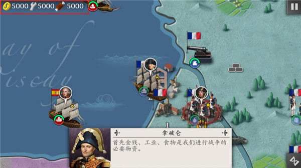 當完成這兩場戰(zhàn)役的全部關卡之后,會開啟新的關卡,包括“神圣羅馬帝國”、“日不落帝國”、“東方霸主”和“美國的崛起”?;旧虾w了1776~1850這一時期亞歐大陸各地的大事件及戰(zhàn)爭。是十分符合回合制策略玩家和歷史軍事迷雙重屬性用戶胃口的一款作品。