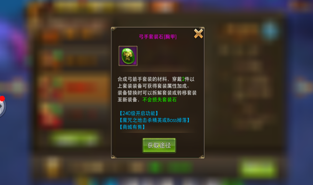 3.生成套服所需原材料為套服石和加強套服石,套服石能夠根據(jù)全球BOSS和商城系統(tǒng)得到 ,