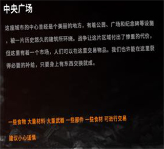 劇情二:交易商,顯示可能的交易,從右側(cè)進(jìn)入地圖,可以挖開一樓的廢墟進(jìn)入左邊房子搜尋物資,也可跟二樓的商人交易,不建議放養(yǎng)。