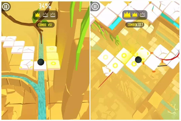 3、還有就是《跳舞的球》在視角轉換上非常嫻熟,和之前單純的欣賞美景不同,加入視覺轉換除了難度提升,還加強了代入感,讓整個游戲更像是一場旅行。