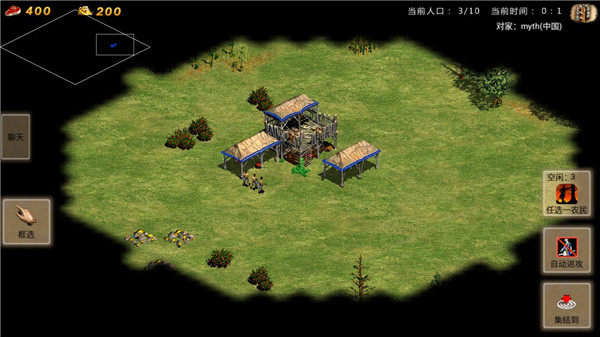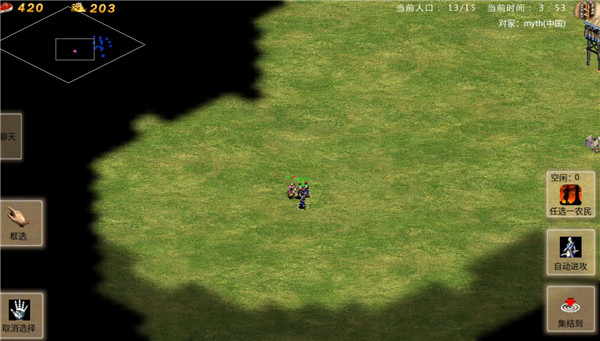 3、進(jìn)入游戲,可以單選農(nóng)民也可以點(diǎn)擊框選按鈕,選擇范圍內(nèi)農(nóng)民
