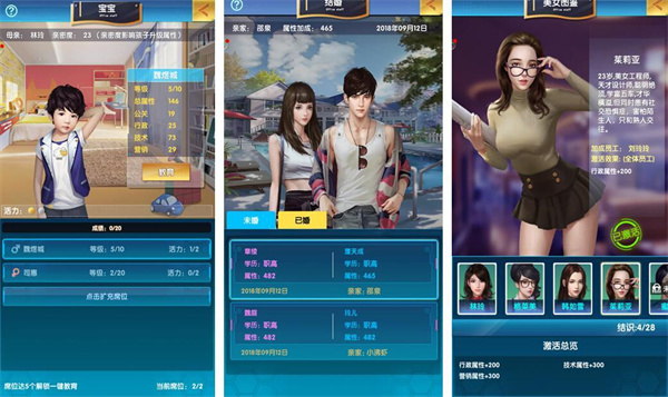 寶寶養(yǎng)成:消耗活力升級,時(shí)間恢復(fù)/教育卡恢復(fù),活力上限2(可通過特權(quán)提升)。寶寶滿級(10)后,通過媒人與其他玩家子女結(jié)婚,提升雙方實(shí)力。消耗鉆戒/磚石,孩子屬性與母親(生育美女)親密度有關(guān)。孩子席位花費(fèi)磚石擴(kuò)充。