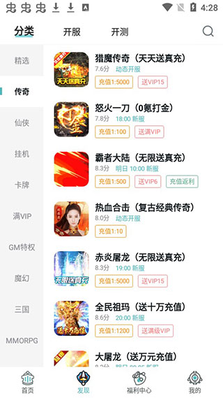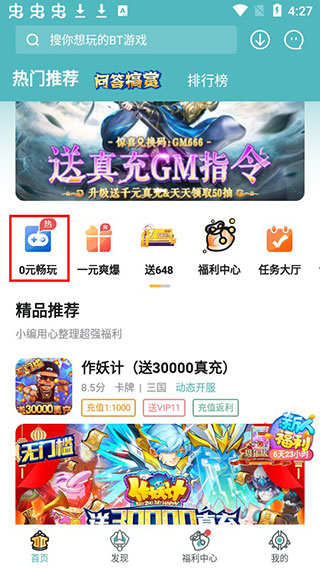 3、點(diǎn)擊主頁面的0元暢玩可看到許多變態(tài)版游戲;