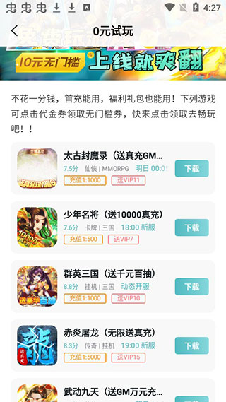 4、在這里玩家可可不花錢即可試玩眾多的bt游戲;
