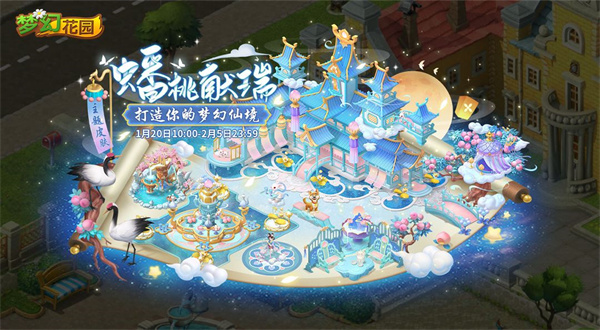 活動玩法:活動期間,闖關(guān)收集元素仙境琉璃,兌換蟠桃獻(xiàn)瑞主題皮膚,把花園打造成夢幻仙境!