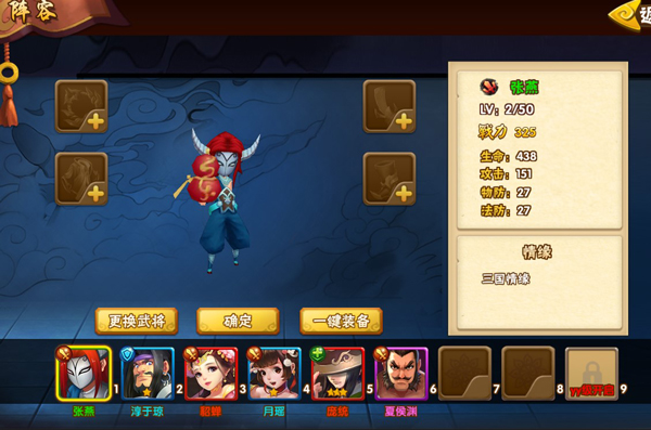在陣容界面中點(diǎn)擊想要裝備的武將頭像進(jìn)入屬性界面。