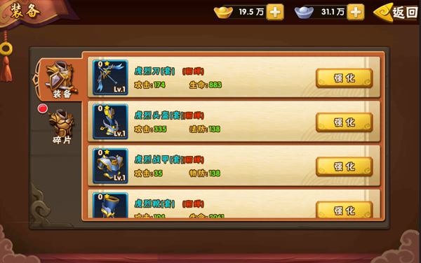 強(qiáng)化提升裝備等級;從而提升裝備屬性中的攻擊和生命