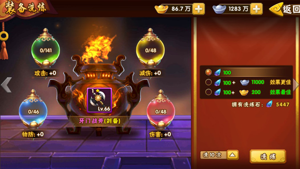 進(jìn)入洗練面板,可根據(jù)內(nèi)容提示選擇洗練類型,點(diǎn)擊“洗練”。