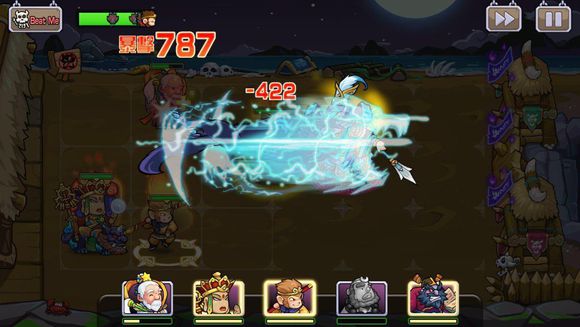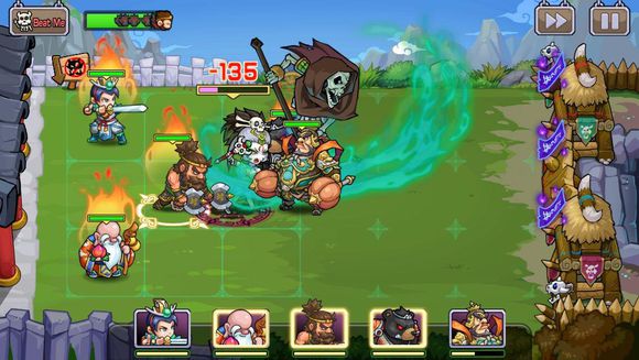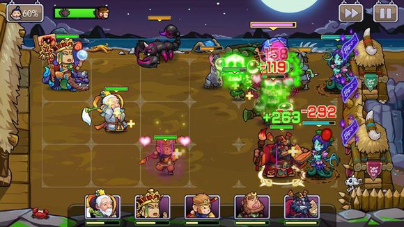 2、每場戰(zhàn)斗玩家將派出至多5名英雄進行戰(zhàn)斗,玩家可根據(jù)每一關的關卡特性,靈活調配上場人員的配置;