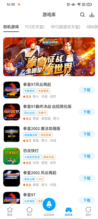 1、下載安裝好熱血街機(jī)最新版,打開(kāi)進(jìn)入軟件選擇一款你喜歡的游戲;
