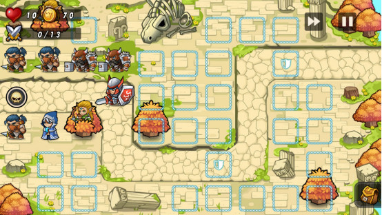 2、初始陣型:中級的減速法師比初級強不少,優(yōu)先升·好,一個衛(wèi)士是必要的,前期放3個小偷可以讓經(jīng)濟更快,然后隨意找兩棵樹蹲好弓箭手就行了