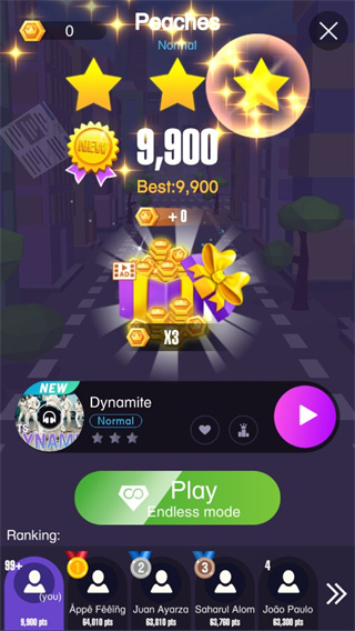 節(jié)奏大師破解版已經(jīng)解鎖了全有音樂,讓你盡情感受音樂游戲帶來的超凡體驗!節(jié)奏大師MusicBeat是一款類似于QQ炫舞玩法的音樂游戲,游戲不僅有節(jié)奏感極強的音樂玩法,還加入了跑酷元素,可以說在玩法上是比較新穎的。除了玩法,在畫面上更是值得一提的,游戲的特效做的非常不錯,畫面色彩搭配和諧,華麗卻不失簡潔,同時游戲中還有著數(shù)個精心設計的創(chuàng)意關(guān)卡以及豐富多彩的炫酷場景等大家來挑戰(zhàn),動感勁爆的音樂伴隨著游戲中音樂精靈的出現(xiàn),將帶給你一場全新與眾不同的挑戰(zhàn)樂趣。游戲非常輕便簡單,不管是老人還是小孩都是非常適合的,你只需指尖輕輕左右滑動跟隨音樂節(jié)奏撞擊前面的方塊就可以,同時在路途中還需要收集星星和蛋糕,游戲非常有趣,但是越到后面越難,后面還會出現(xiàn)紅色的方塊,撞到的話就會失敗,得重新挑戰(zhàn)。除此之外,游戲非??简炌婕业姆磻芰褪炙伲绕涫呛笃谟械臅r候都會反應不過來。