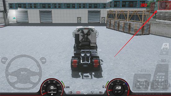2、點(diǎn)擊右上角菜單,點(diǎn)擊左側(cè)鑰匙圖標(biāo)啟動(dòng)卡車,即可開(kāi)始按踏板操作,坐標(biāo)為方向盤,右側(cè)為剎車和油門,油門上方為前進(jìn)和倒擋;